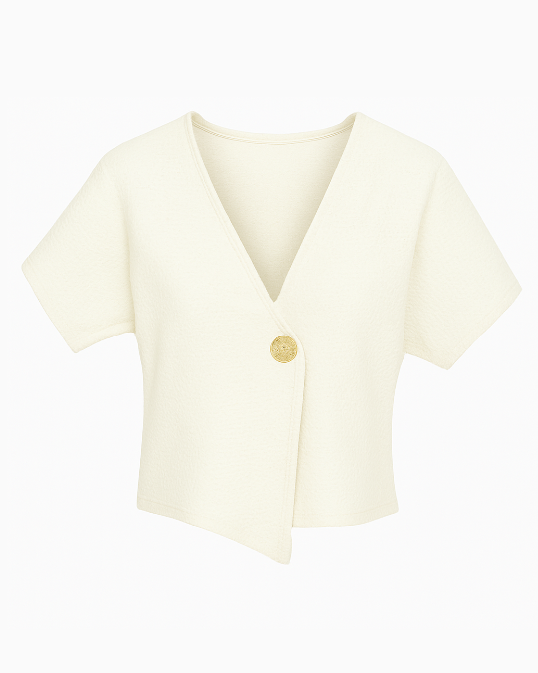 Corte cruzado con botón decorativo dorado